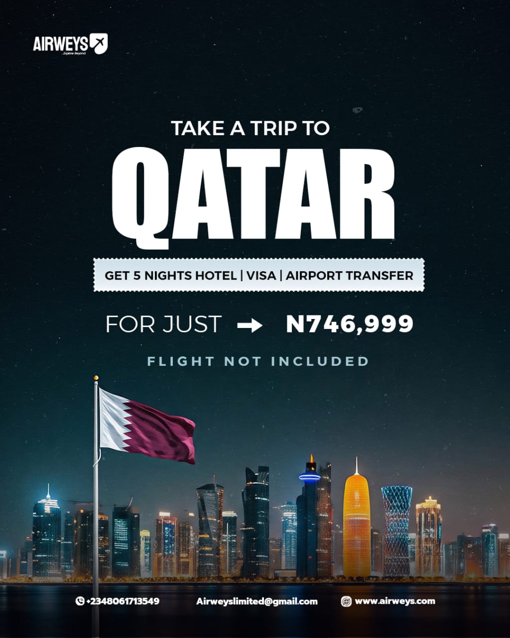 Whether it’s leisure, adventure, or a quick escape, Airweys has your Qatar trip covered.